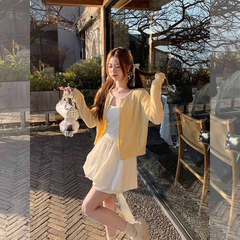 汤圆不圆2/24 AM00:00 38开门红新品八折 黄色针织开衫女麻花毛衣