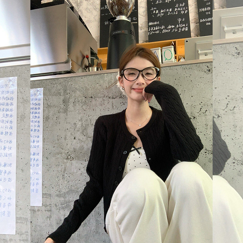 汤圆不圆 2/24 AM00:00 38开门红 新品八折 黑色开衫女麻花毛衣