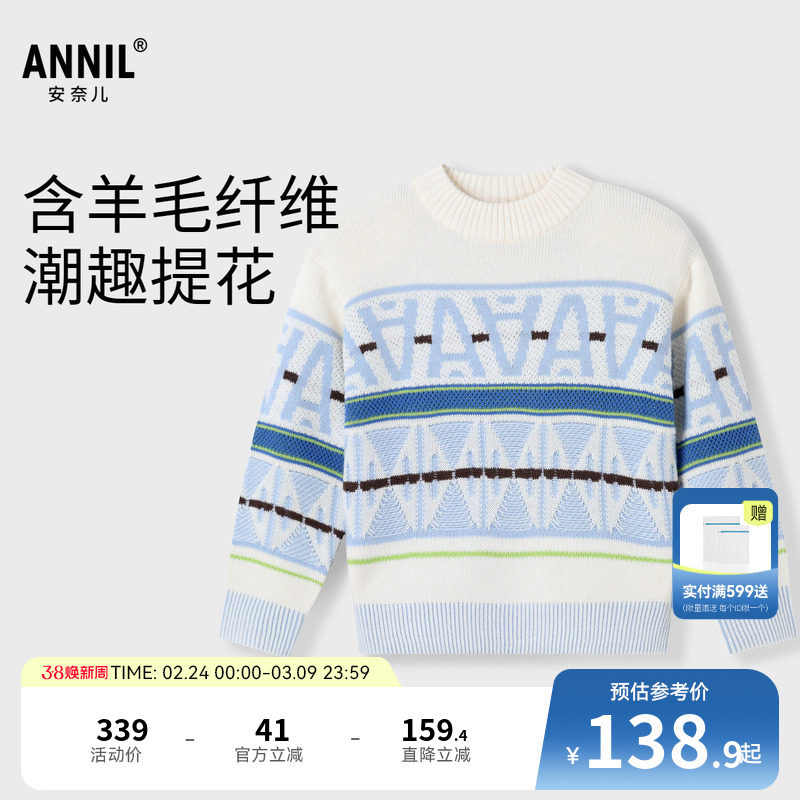 【商场同款】安奈儿童装男童女童中领长袖毛衫2024冬新款AM444653