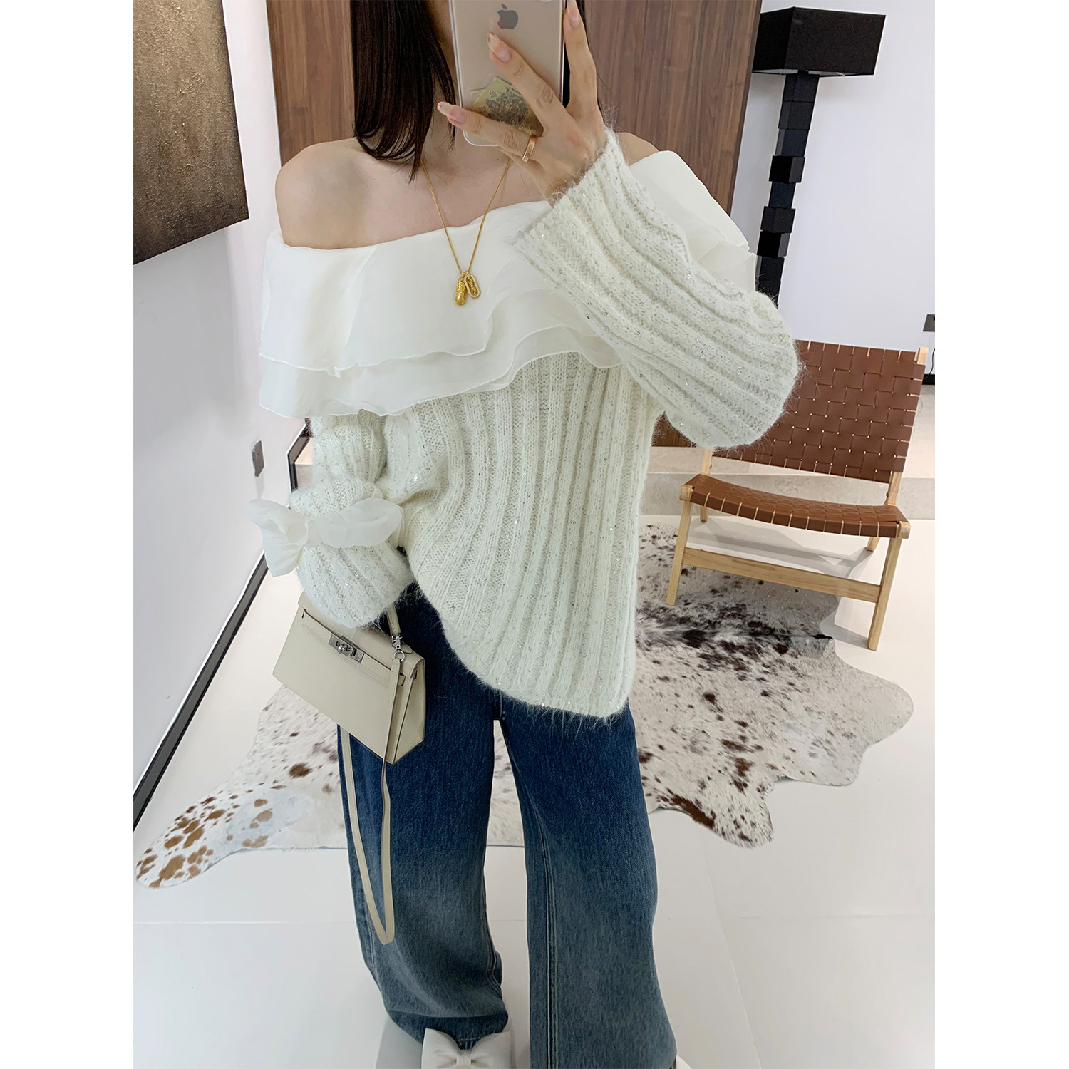 12/11 10AM 徐琳「圣诞献礼」慵懒感一字肩飘带绵羊毛混纺毛衣