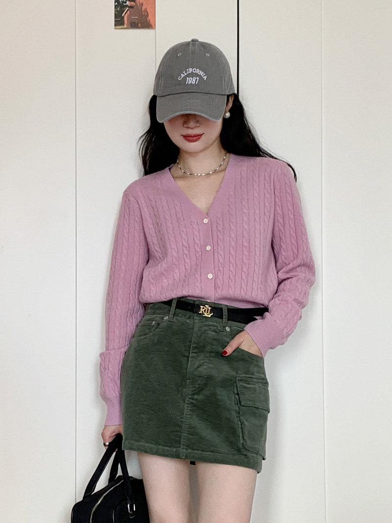 7AM10PM圆领针织开衫全羊毛百搭打底毛衣外套女长袖秋冬空调上衣