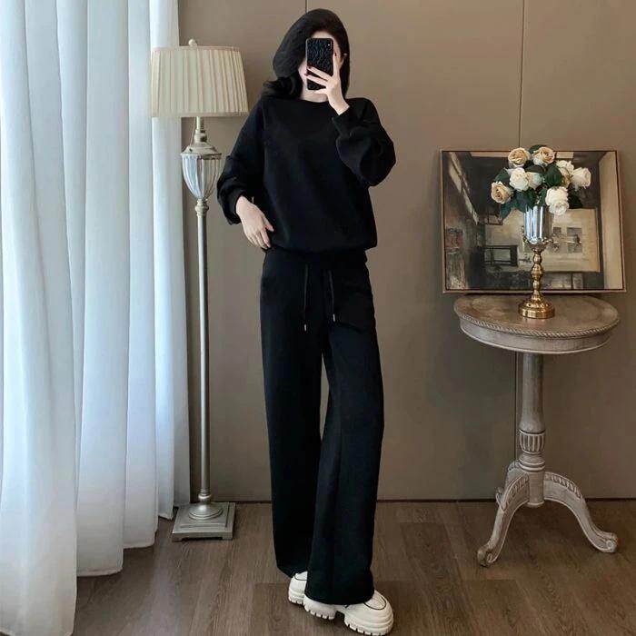 加绒时尚休闲套装女2025秋冬季新款连帽卫衣阔腿裤减龄显瘦两件套