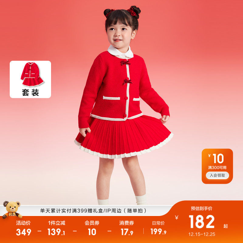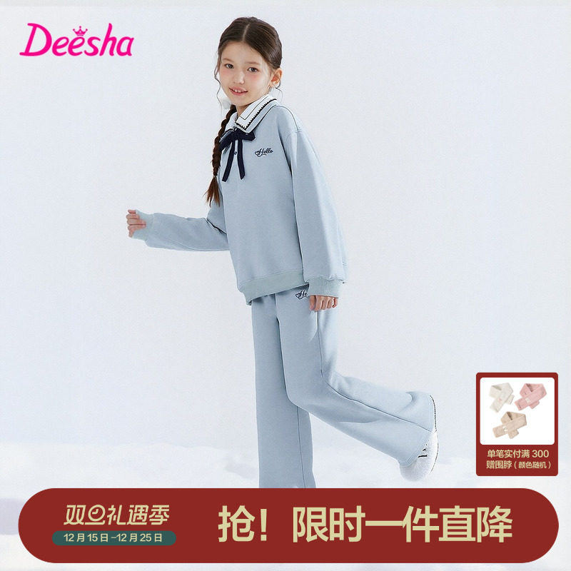 笛莎官方旗舰童装女童加绒套装秋冬季新款大童女孩儿童保暖两件套