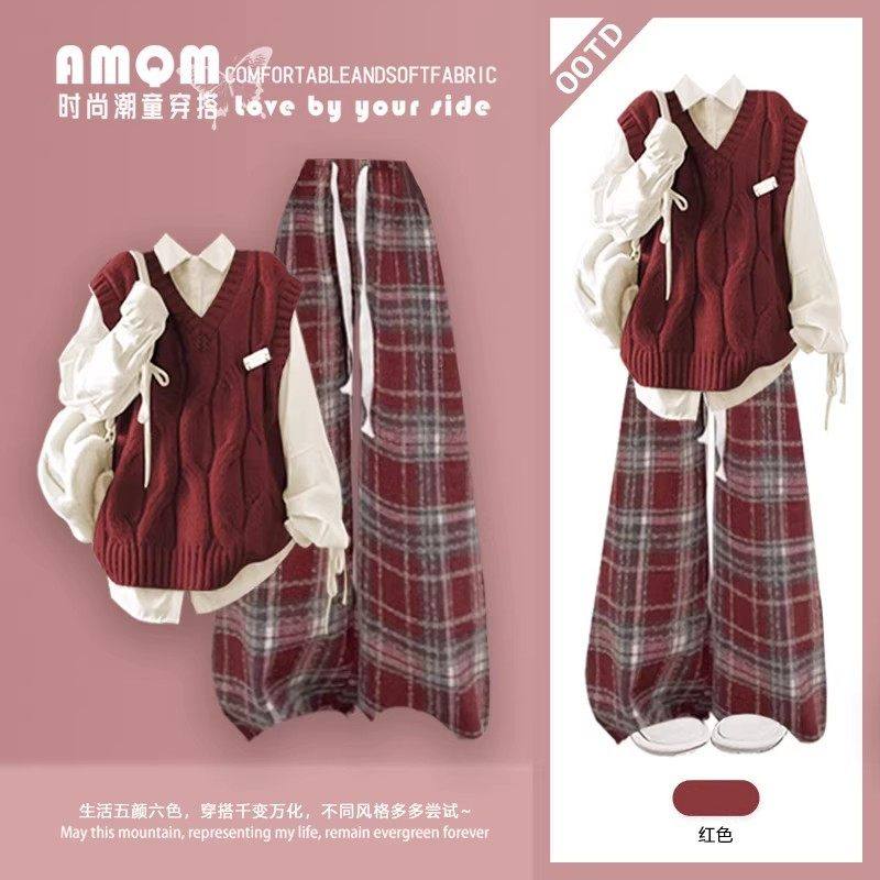 初中学生三件套装加绒加厚冬装搭配一整套高中生秋冬针织毛衣外套