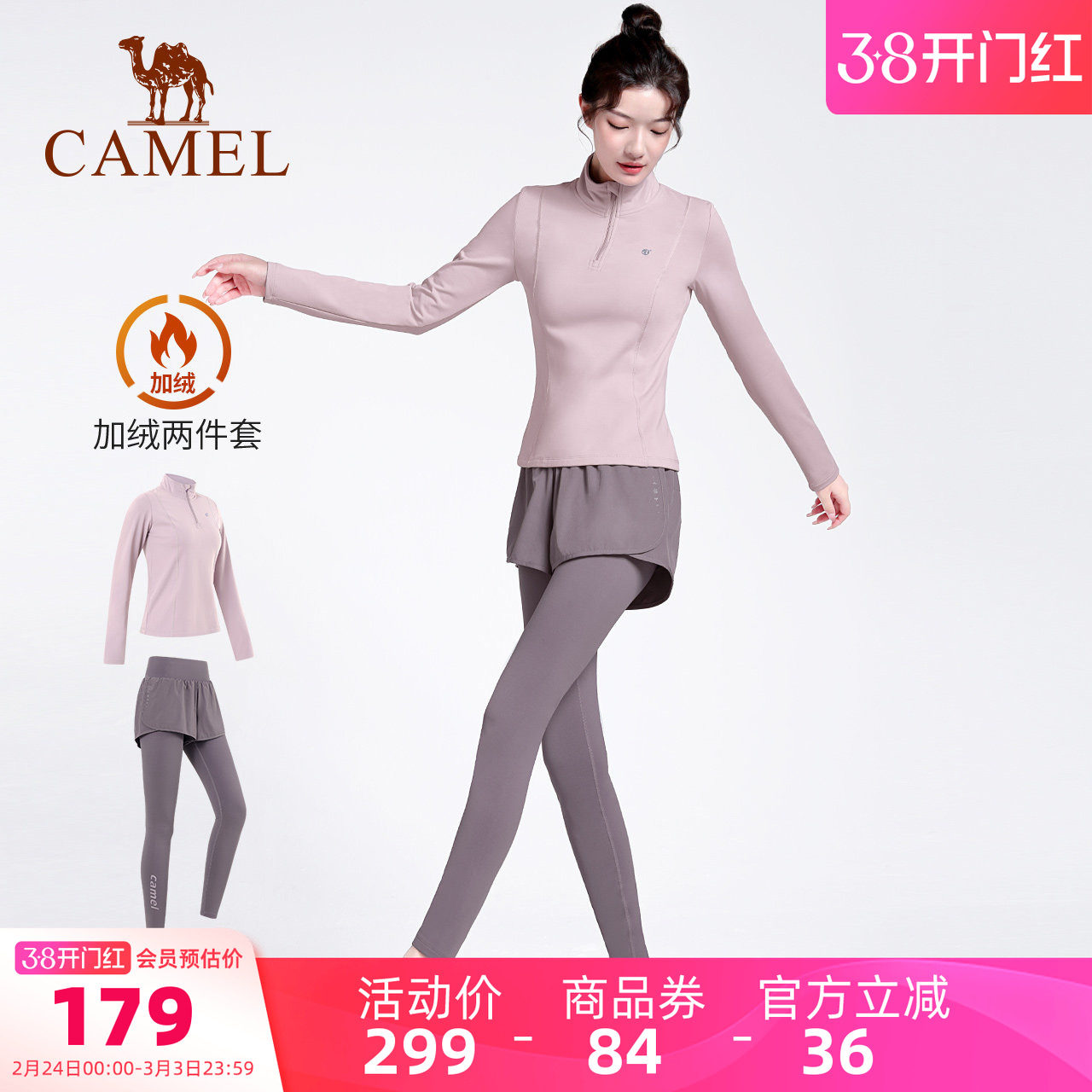 骆驼瑜伽服套装女款秋冬晨跑服防风修身休闲服加绒健身运动两件套