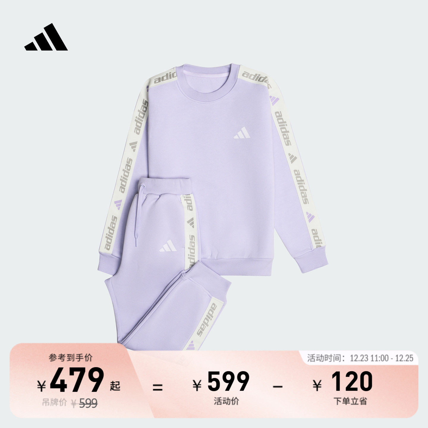 男女小童长袖休闲加绒卫衣卫裤套装秋冬adidas阿迪达斯官方轻运动