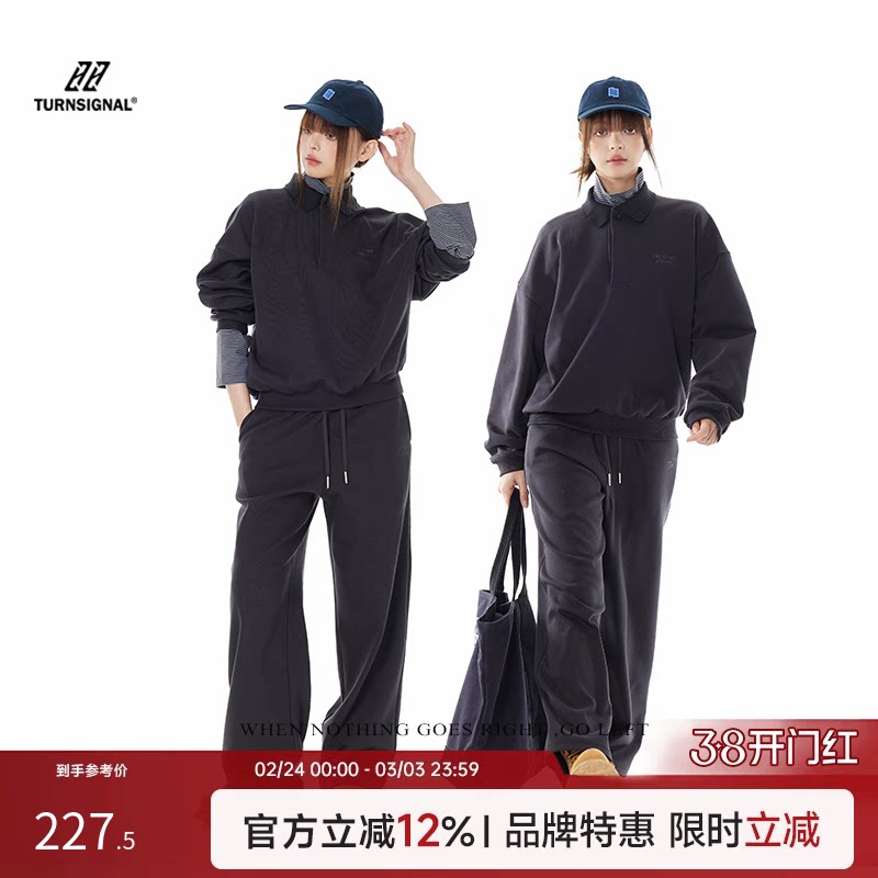 TurnSignal潮牌POLO领卫衣长裤套装女秋冬加厚加绒休闲运动两件套