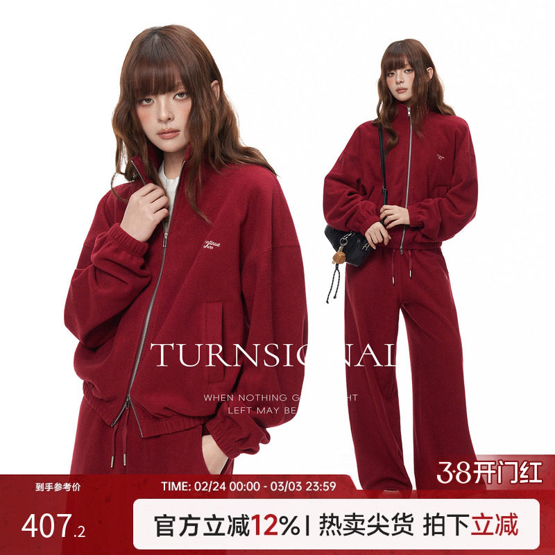 TurnSigna摇粒绒开衫卫衣长裤套装女秋冬加绒加厚休闲运动两件套