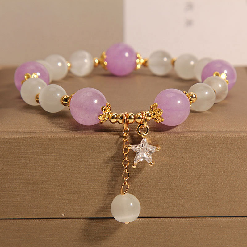 韩版猫眼石手链女简约个性森系紫色水晶串珠学生闺蜜气质手串手饰