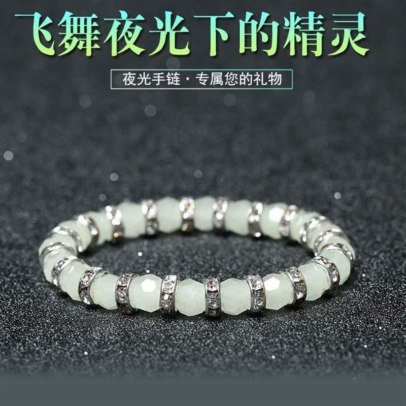 天然夜明珠发光夜光石手链 女个性韩版简约学生 森系闺蜜一对礼物