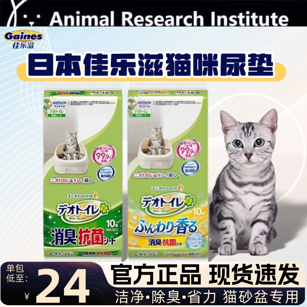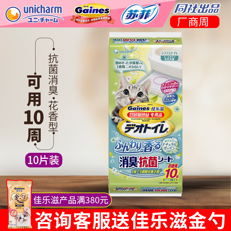 佳乐滋猫尿垫10片日本进口沸石猫砂双层猫砂盆专用花香型猫用尿片