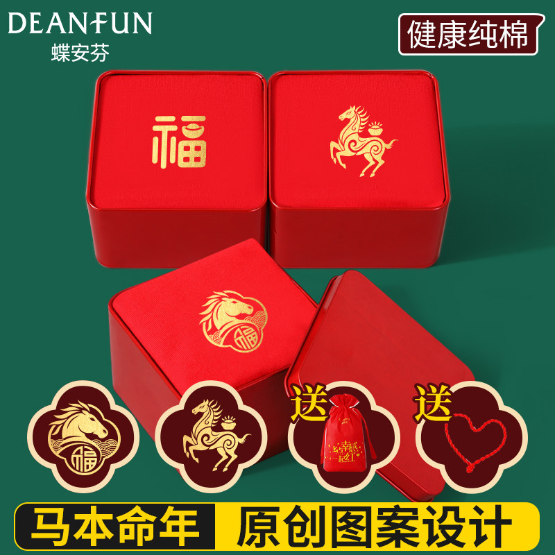 蝶安芬本命年红色内裤女马年纯棉裆大红内裤袜子套装结婚属马礼盒