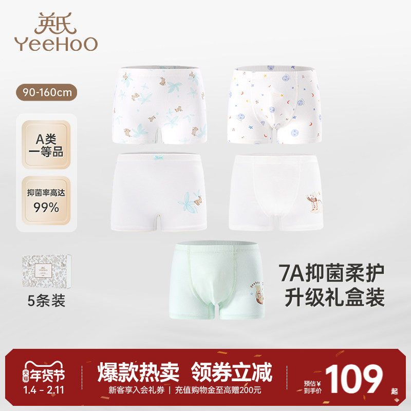 红豆女童红色内裤纯棉12岁女孩马年本命年三角裤儿童短裤新年礼盒