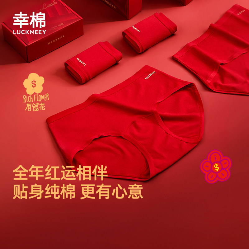 幸棉有钱花本命年红色内裤女马年纯棉加长裆红袜子结婚情侣礼盒装