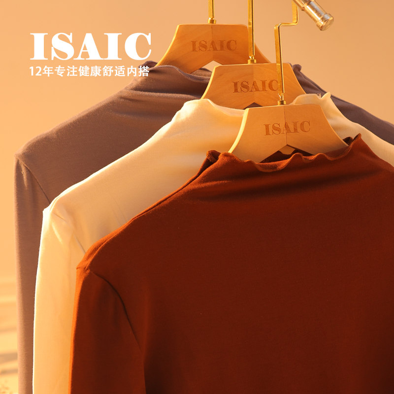 木耳边打底衫立领半高领小立领白色大码莫代尔春秋针织T恤上衣女