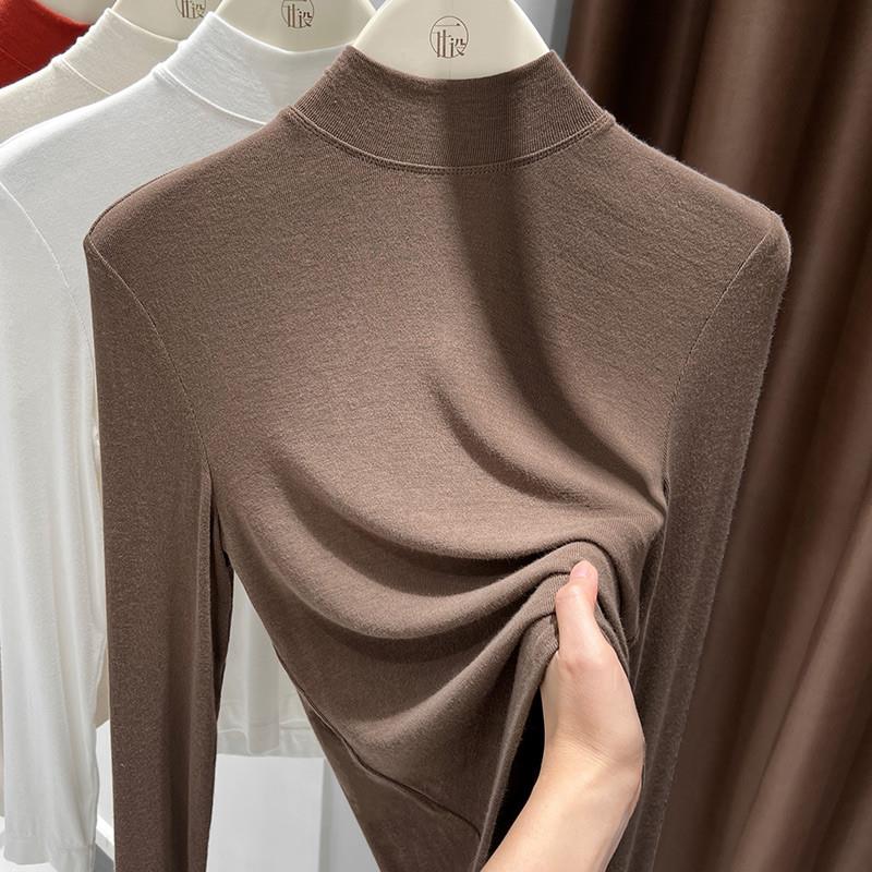 莫代尔半高领打底衫女内搭加绒2025年新款白色秋冬修身磨毛小立领
