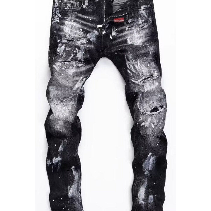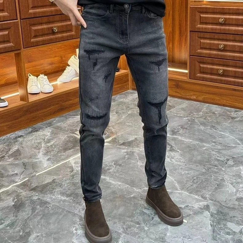 - 黑色破洞小脚牛仔裤女