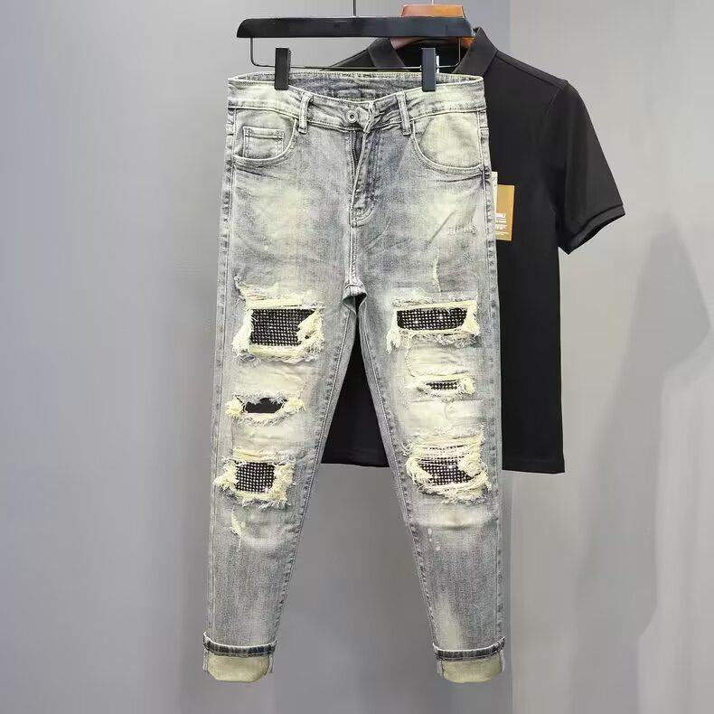 - 破洞小脚铅笔裤女