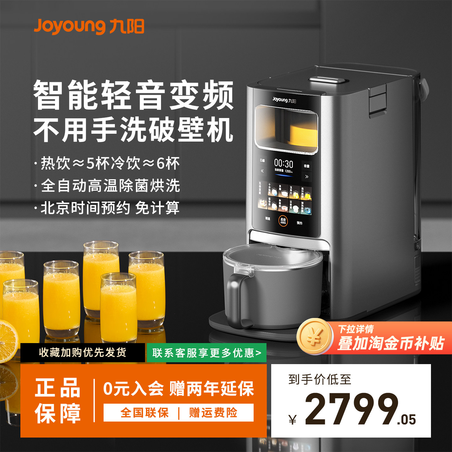 九阳变频轻音破壁机大容量智能预约全自动家用免煮豆浆辅食料理机