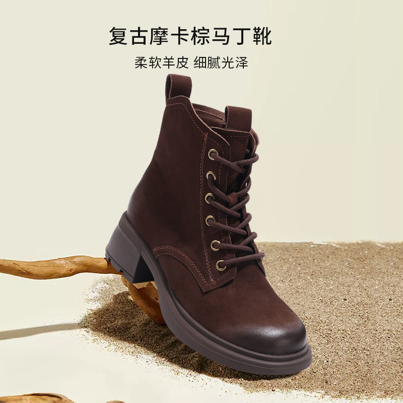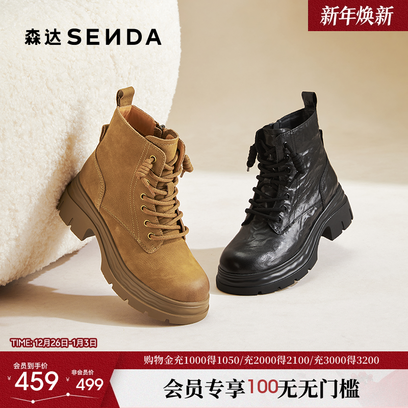 - 真皮厚底女靴短靴
