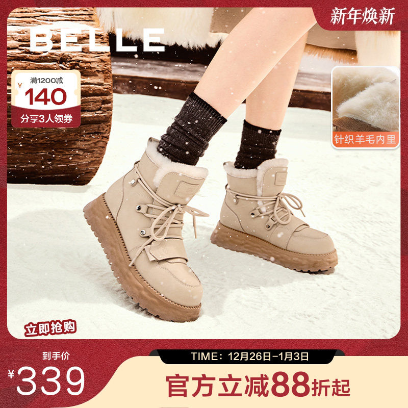 - 短靴子女冬粗跟加绒
