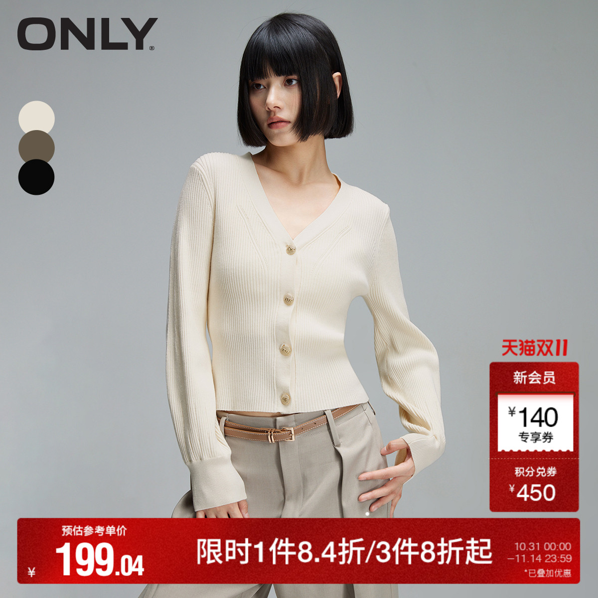 日单黑色V领灯笼袖针织开衫女H83087春秋季新款短款简约毛衣外套