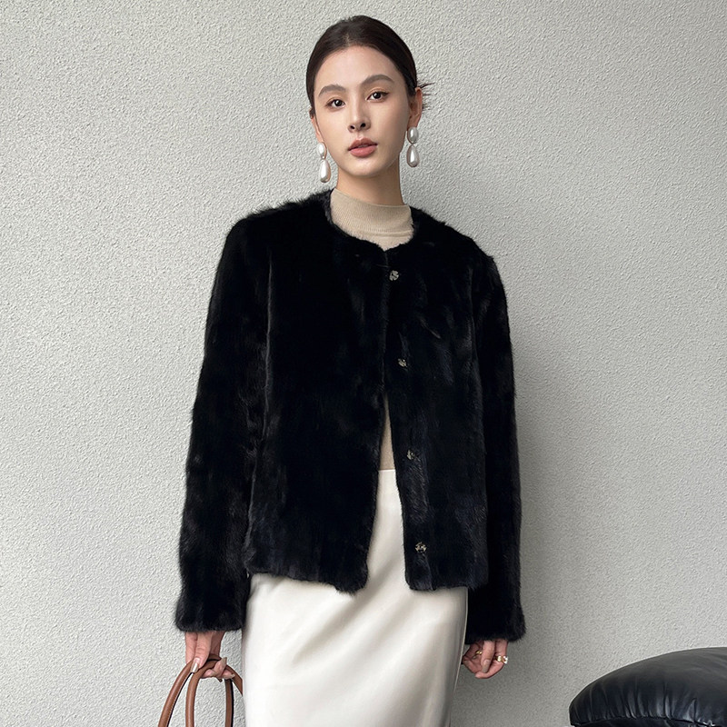 高端大气进口整貂冬季女士年轻款皮草短款长袖圆领水貂毛貂皮大衣