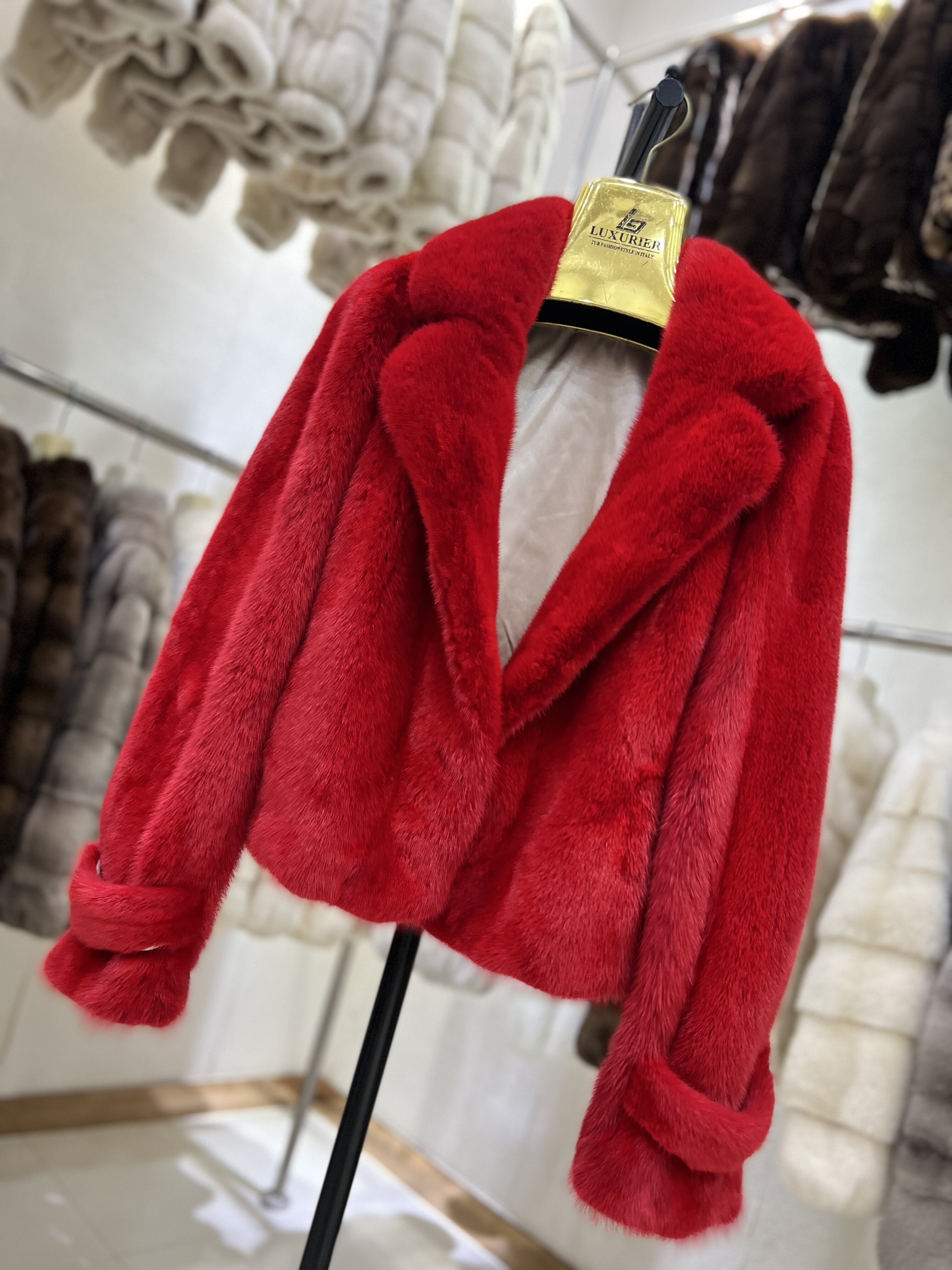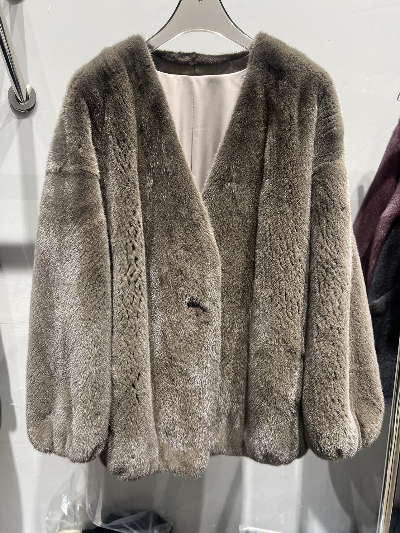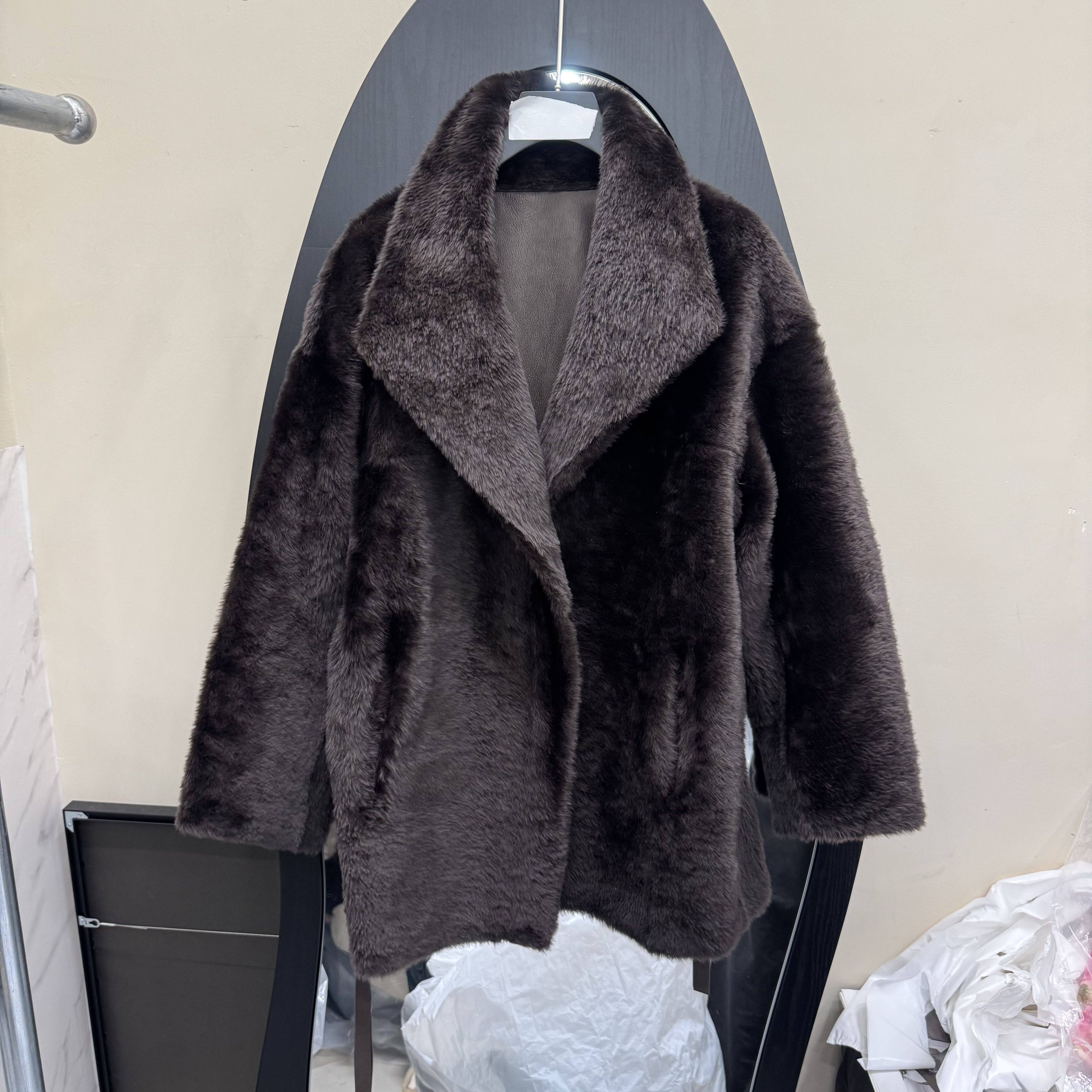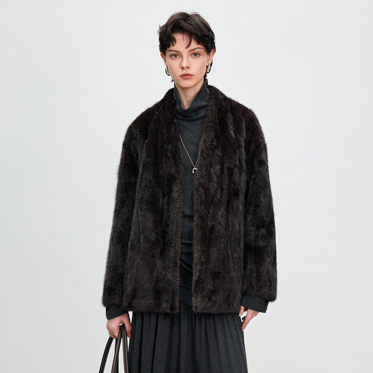 2025进口整貂母貂年轻款女新款水貂毛西装领短款长袖宽松貂皮大衣