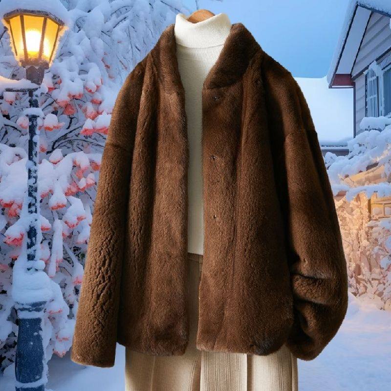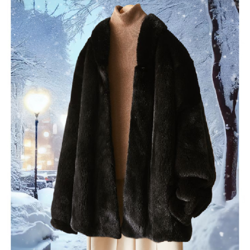 华洋2025新款连帽仿貂皮大衣女休闲宽松毛绒外套冬季长袖皮草夹克