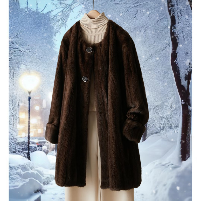 新款水貂毛皮草外套女2025冬季咖啡色复古长袖欧美风海宁貂皮大衣