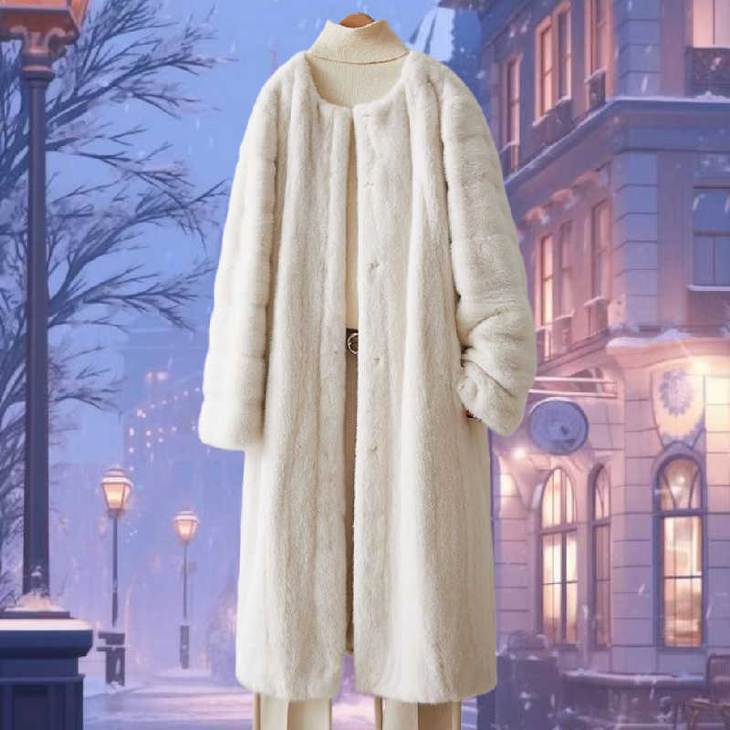 欧货2025秋冬新款翻领长袖水貂毛皮草外套保暖厚实中长款貂皮大衣