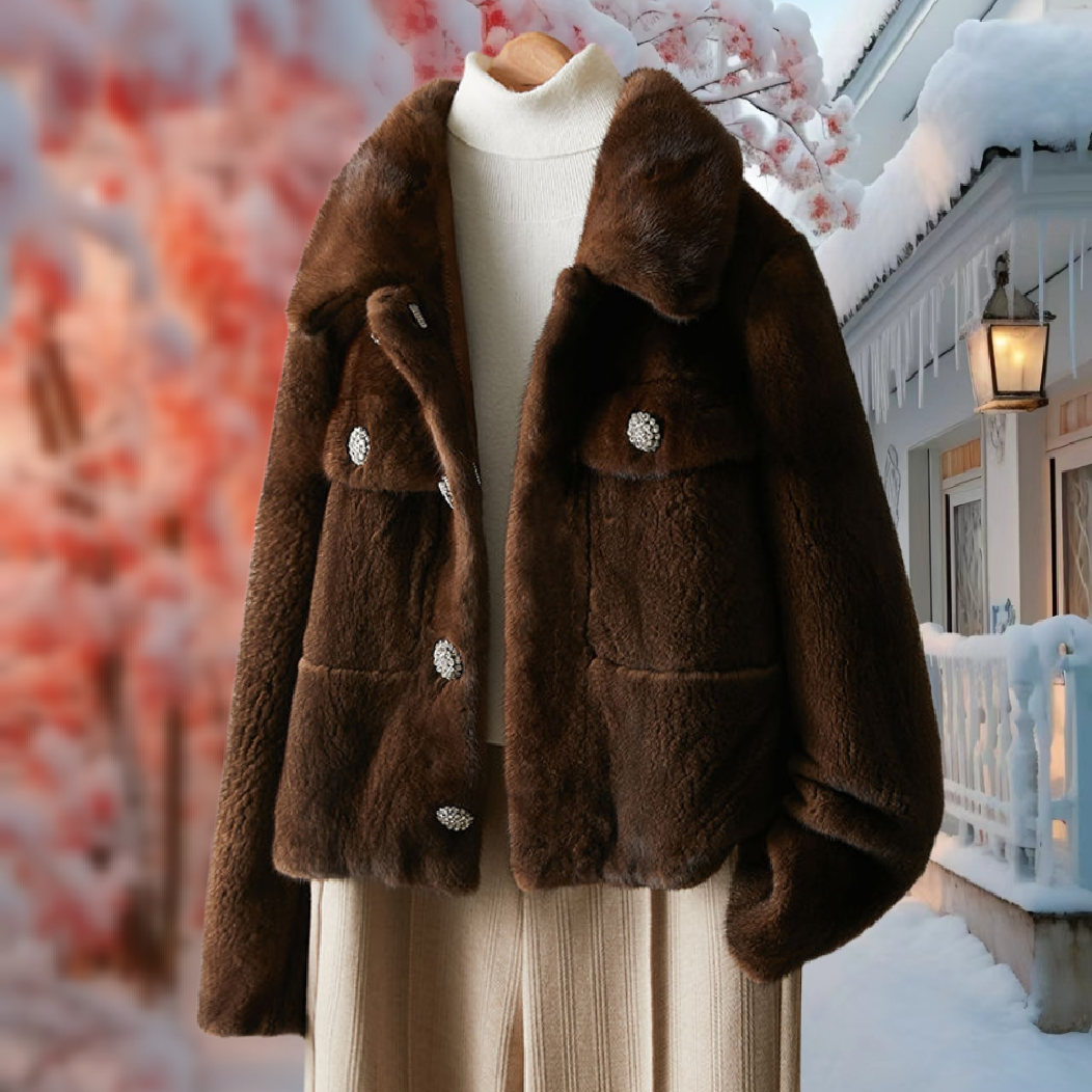 2025新款水貂毛皮草外套女两面穿冬季时尚小香风短款长袖貂皮大衣