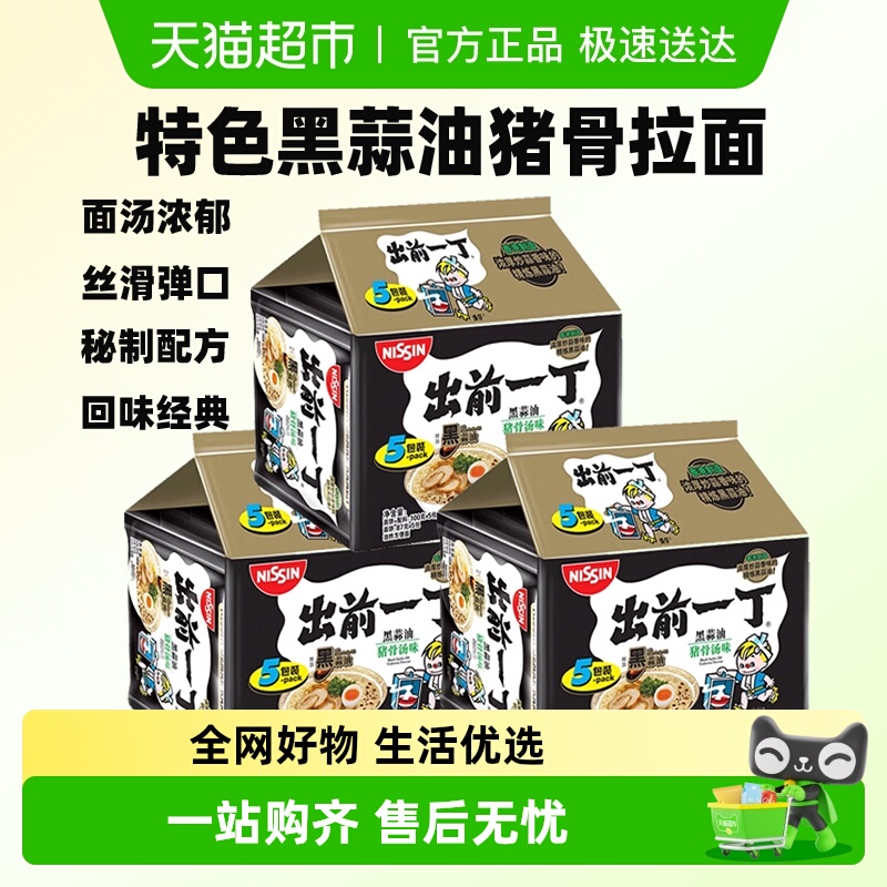 【自营】日清进口出前一丁黑蒜油猪骨方便面100g*5袋装日本拉面