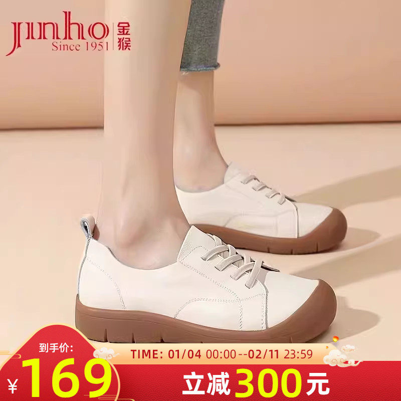 金猴女鞋2025秋季新款真皮休闲软底软面可爱风运动牛皮小白鞋女