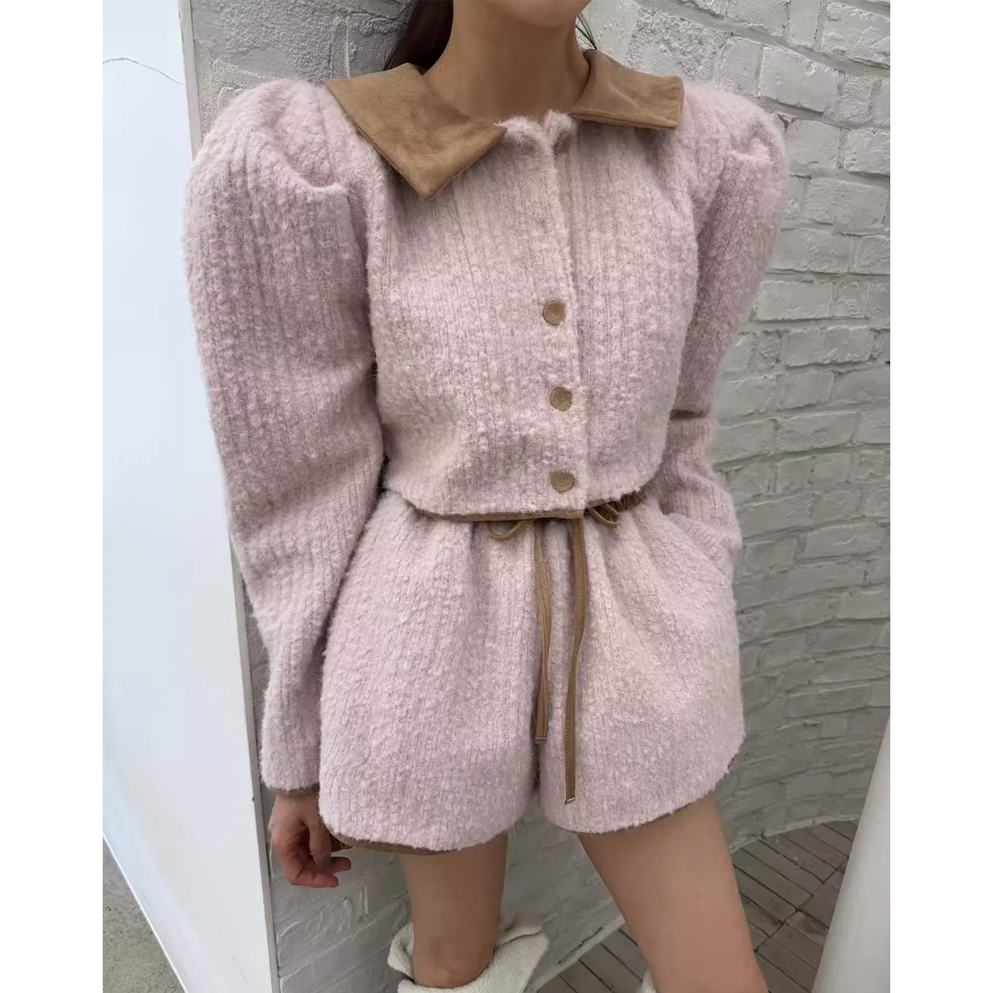 欧洲站2025秋冬新款女时尚休闲POLO领套头羊毛毛衣+针织短裤套装