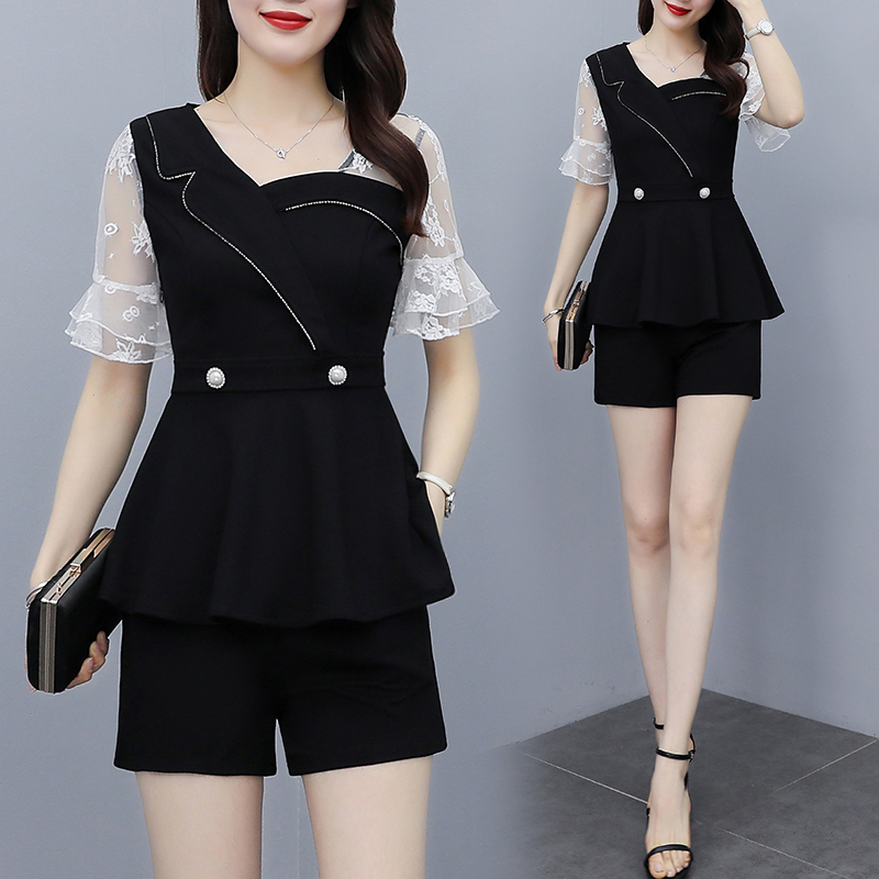 两件套时尚漂亮气质套装女装夏季设计感翻领外套高腰短裤潮1389