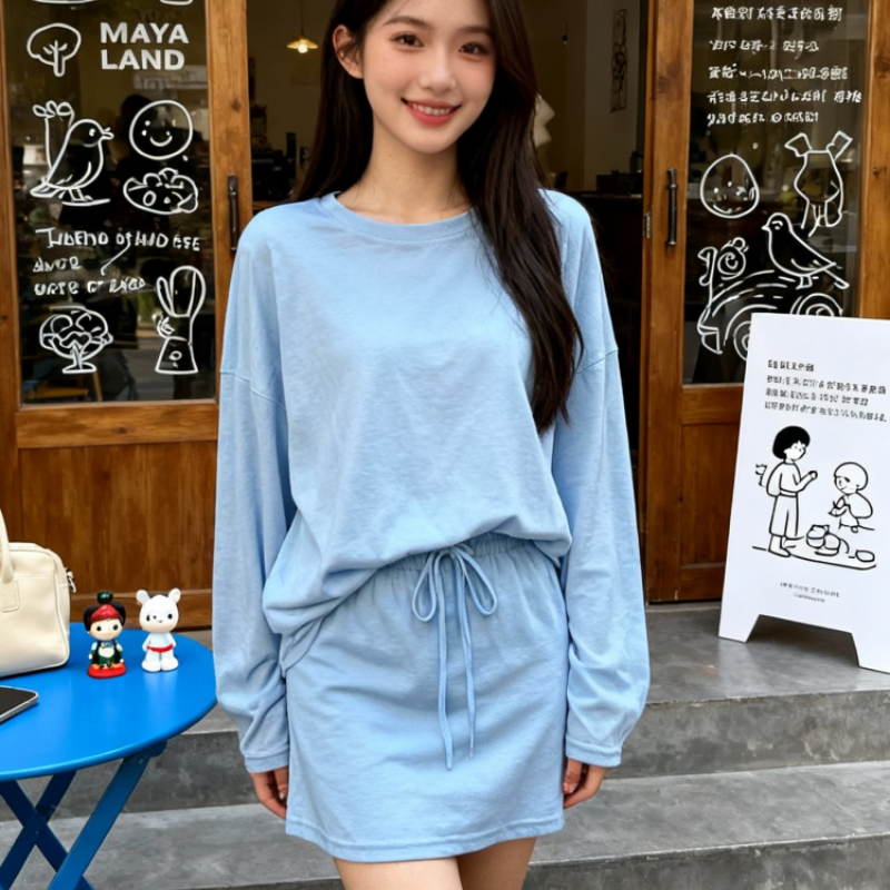 韩系休闲风系带两件套长袖T恤2025年秋冬新款巨好看时尚短裤套装