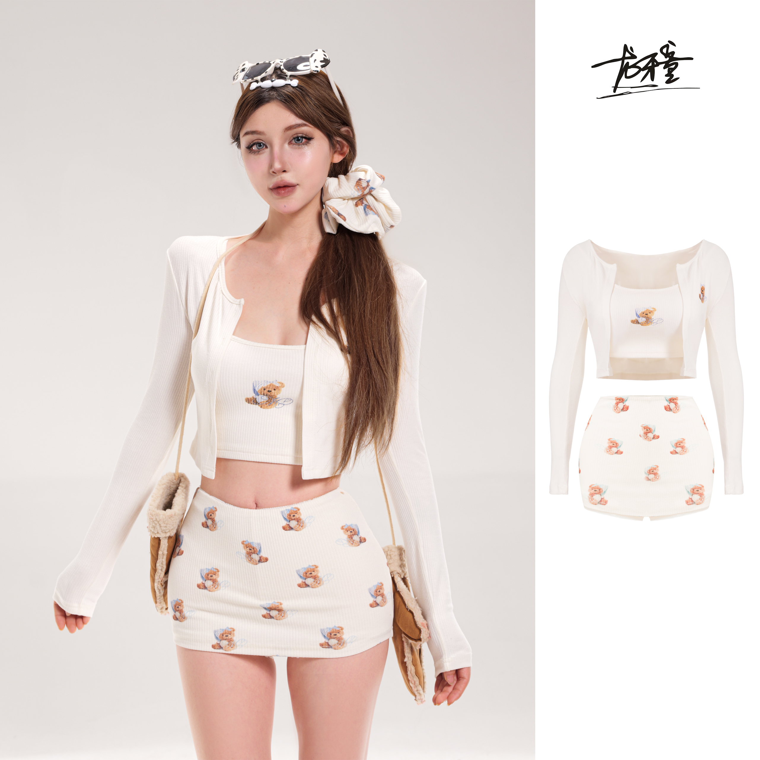 龙牙童推荐【小熊出没】显瘦小甜妹风短裤套装时尚性感纯欲修身秋