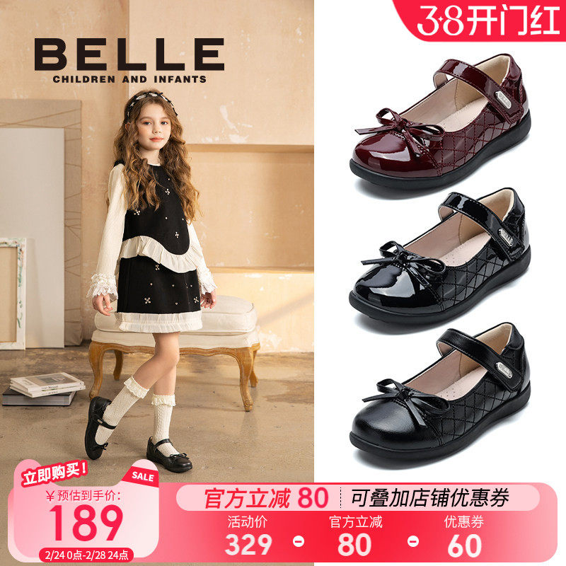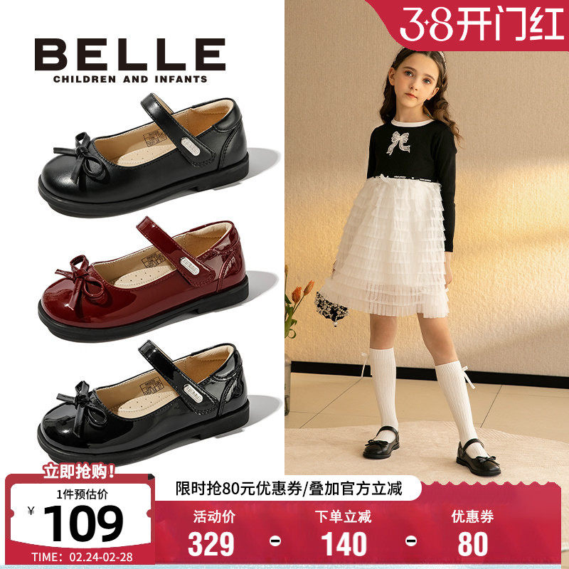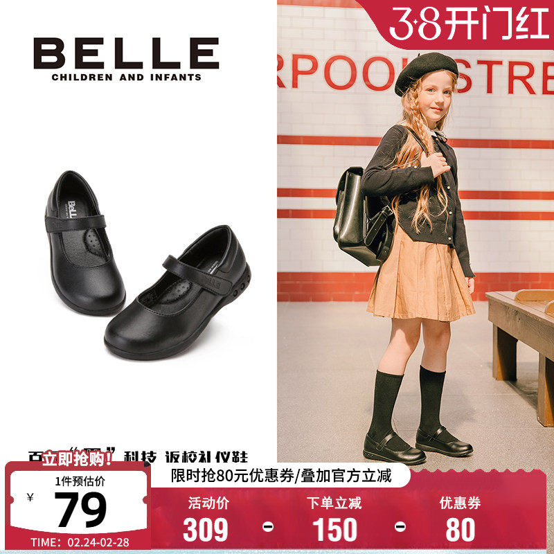 百丽童鞋女童黑皮鞋学生校园表演鞋春季新款儿童时尚单鞋宝宝软底