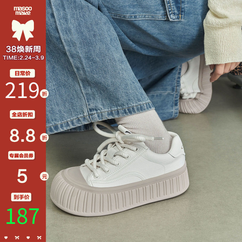 玛速主义单鞋女2026年春季新款休闲板鞋厚底饼干鞋学生运动小白鞋