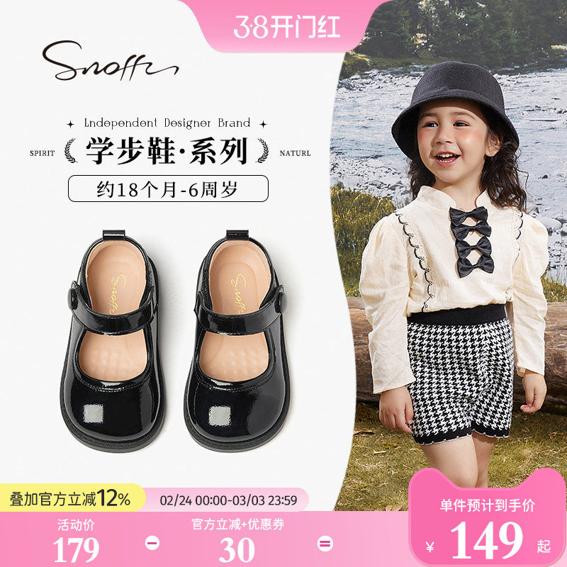 斯纳菲女童皮鞋黑色亮皮公主鞋春秋新款儿童学生软底防滑宝宝单鞋