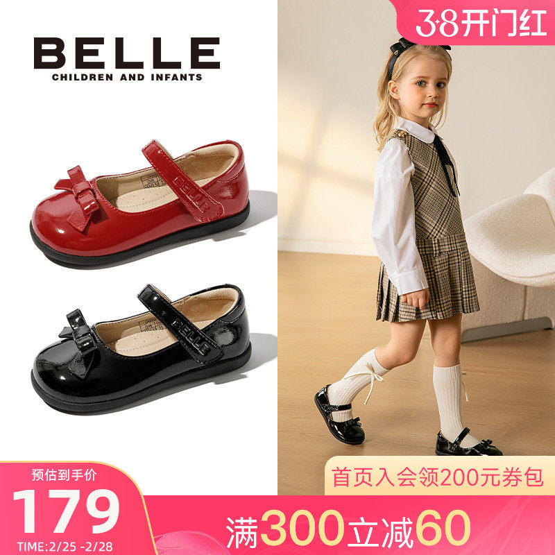 百丽童鞋女童黑色皮鞋春季新年儿童学生演出鞋红色公主鞋时尚单鞋
