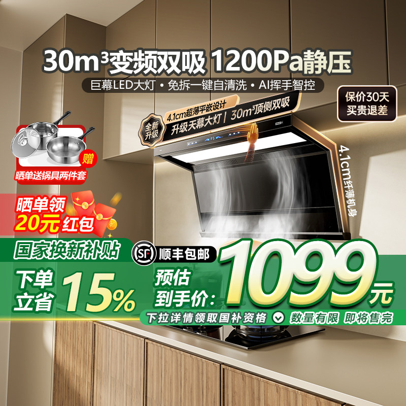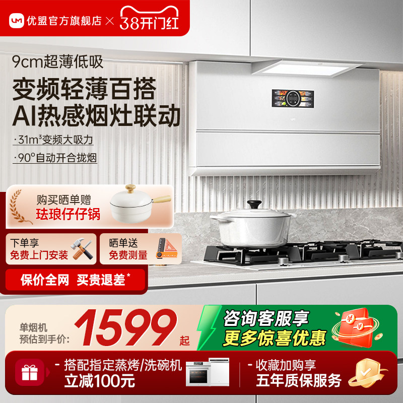 [政府补贴]]优盟F1S侧吸抽油烟机燃气灶套餐家用厨房大吸力官方