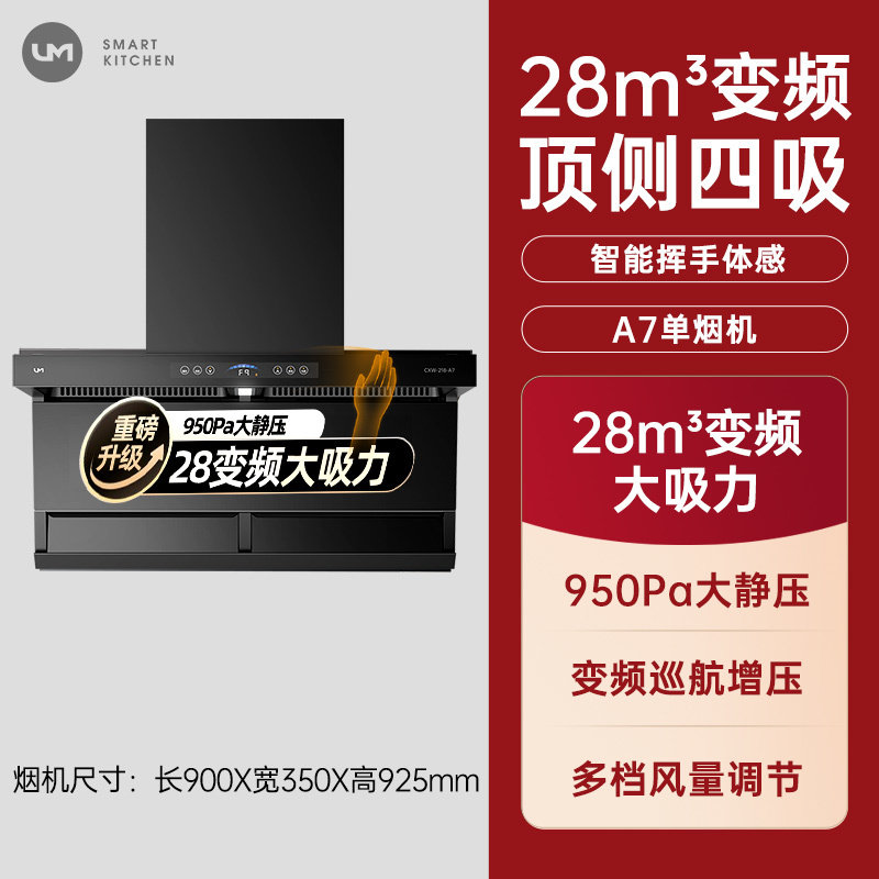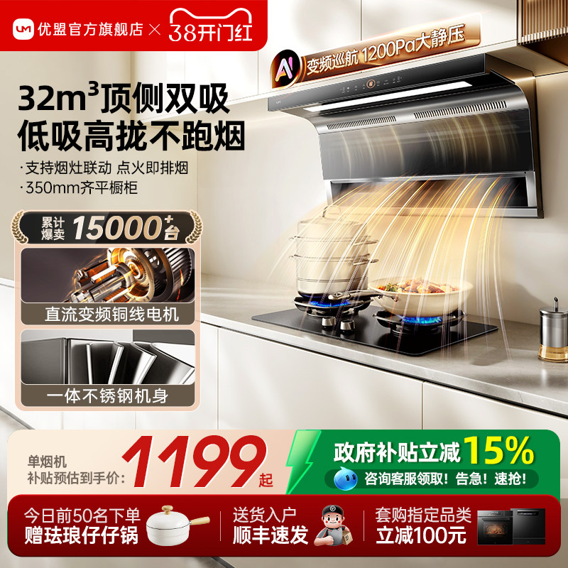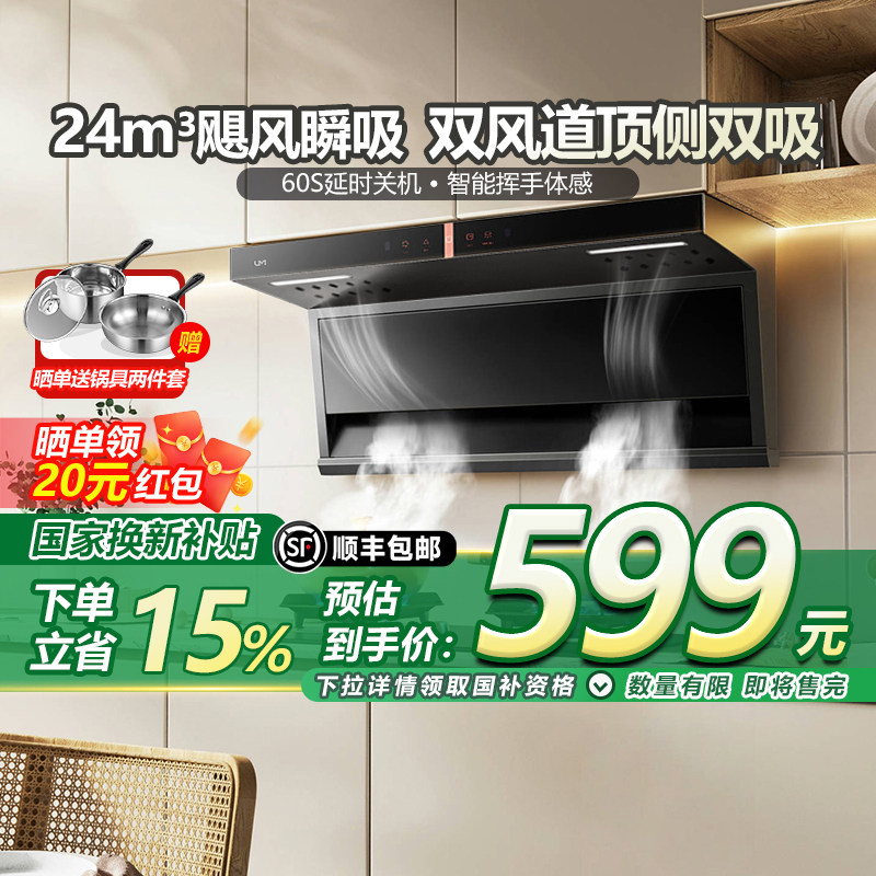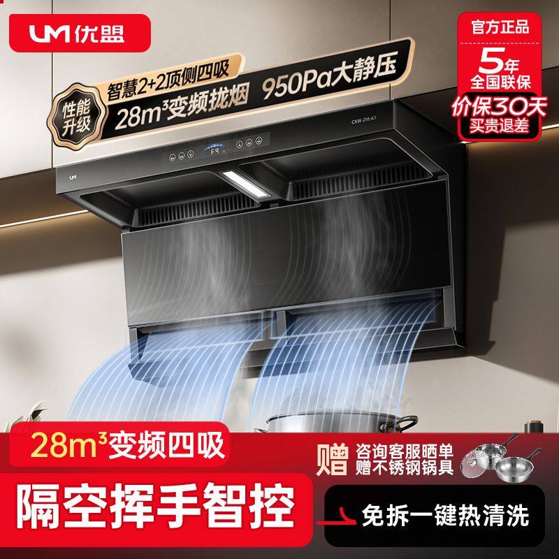 [政府补贴]优盟顶侧双吸抽油烟机燃气灶套餐厨房家用大吸力变频