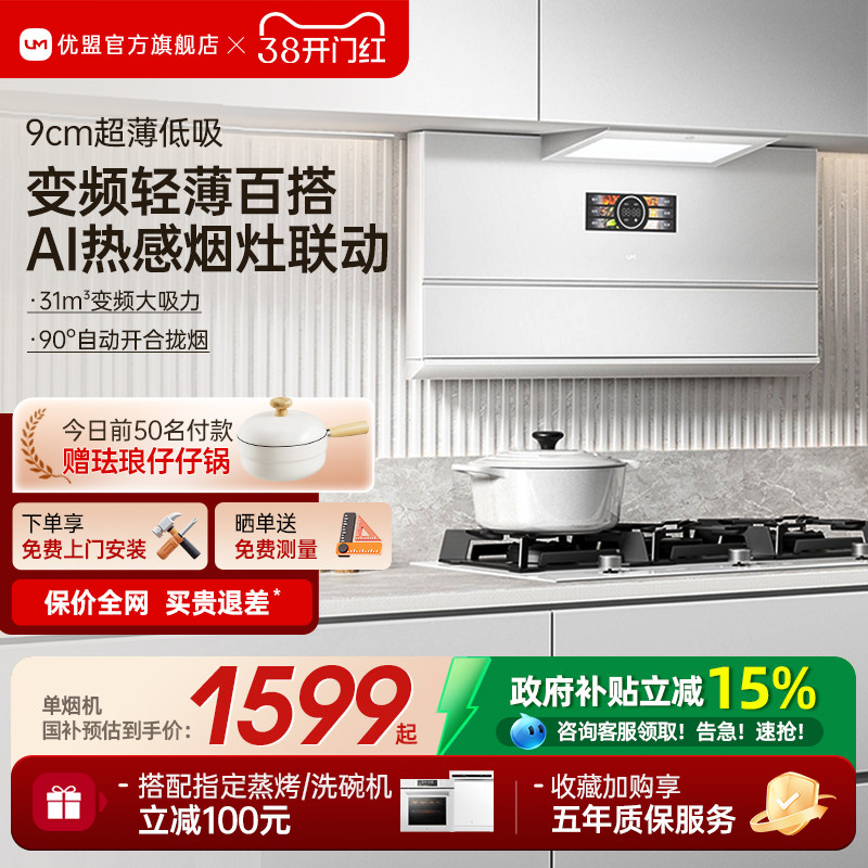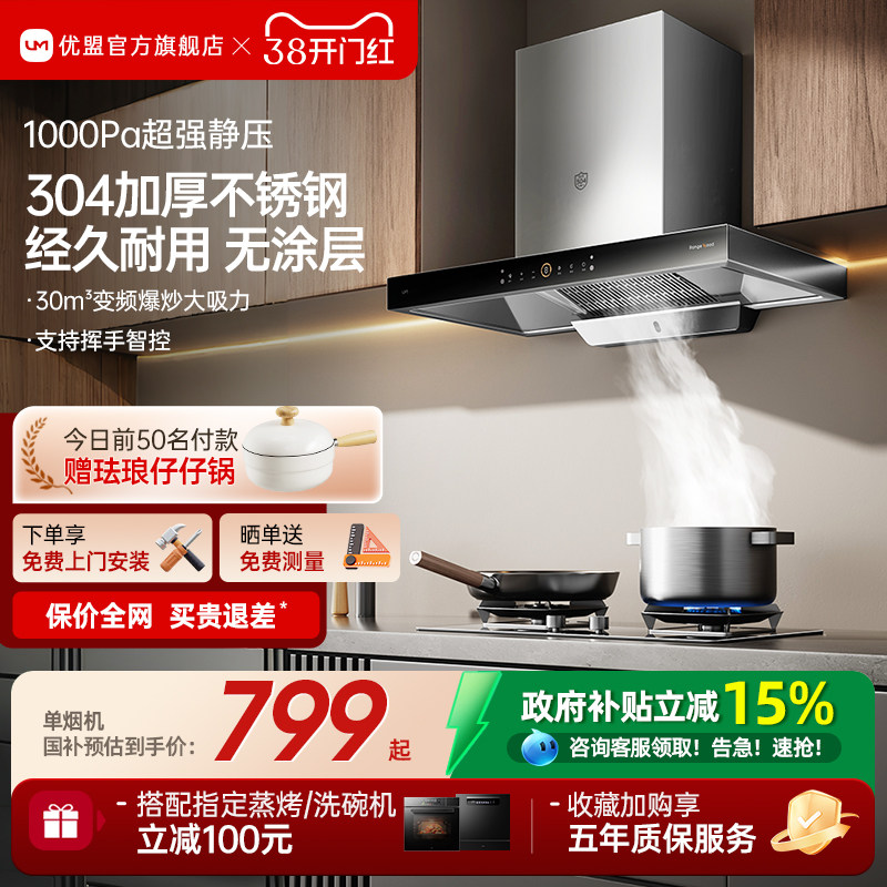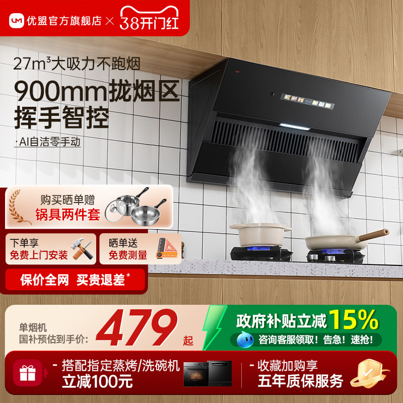 【政府补贴15%】优盟吸油烟机家用大吸力以旧换新补贴抽油烟机49