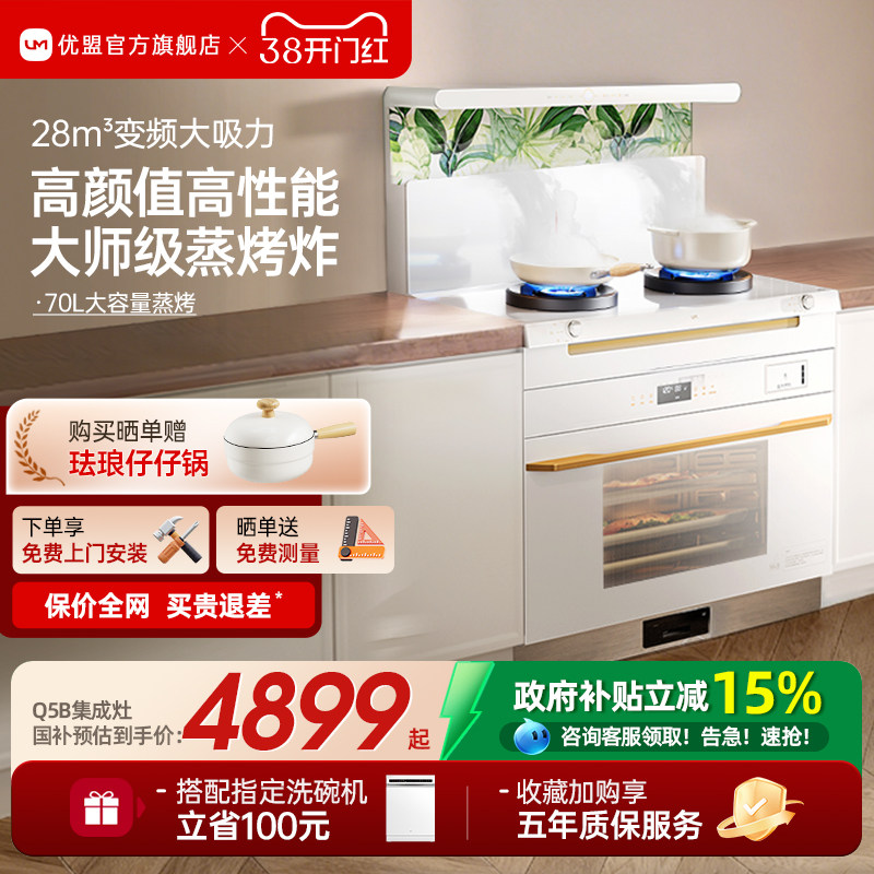 [年度爆品]优盟Q1B集成灶家用一体灶台消毒柜油烟机变频大吸力