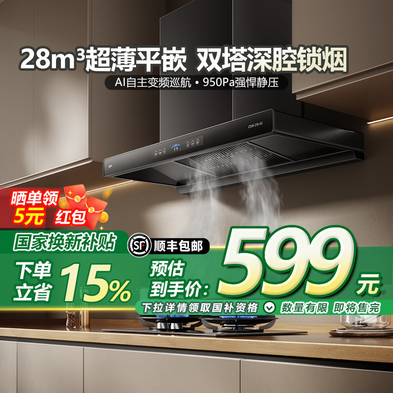【政府补贴15%】优盟变频油烟机以旧换新补贴抽油烟机大吸力49