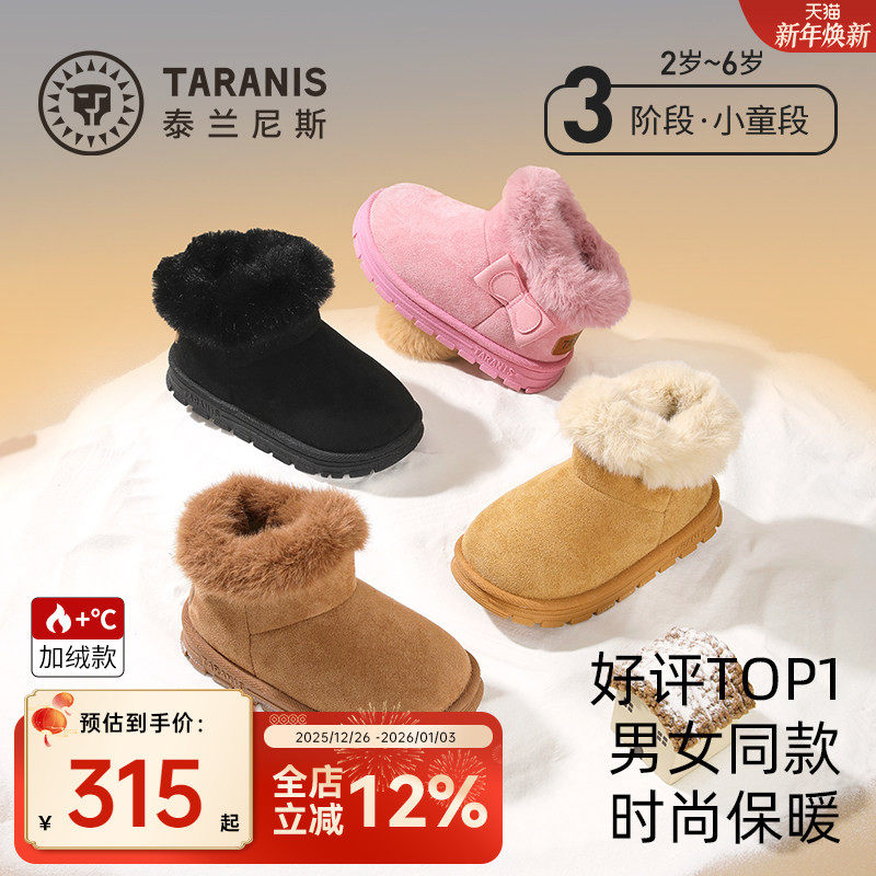 泰迪爱兰儿童棉鞋加绒保暖雪地靴2025新款冬季童鞋男女童短靴防水