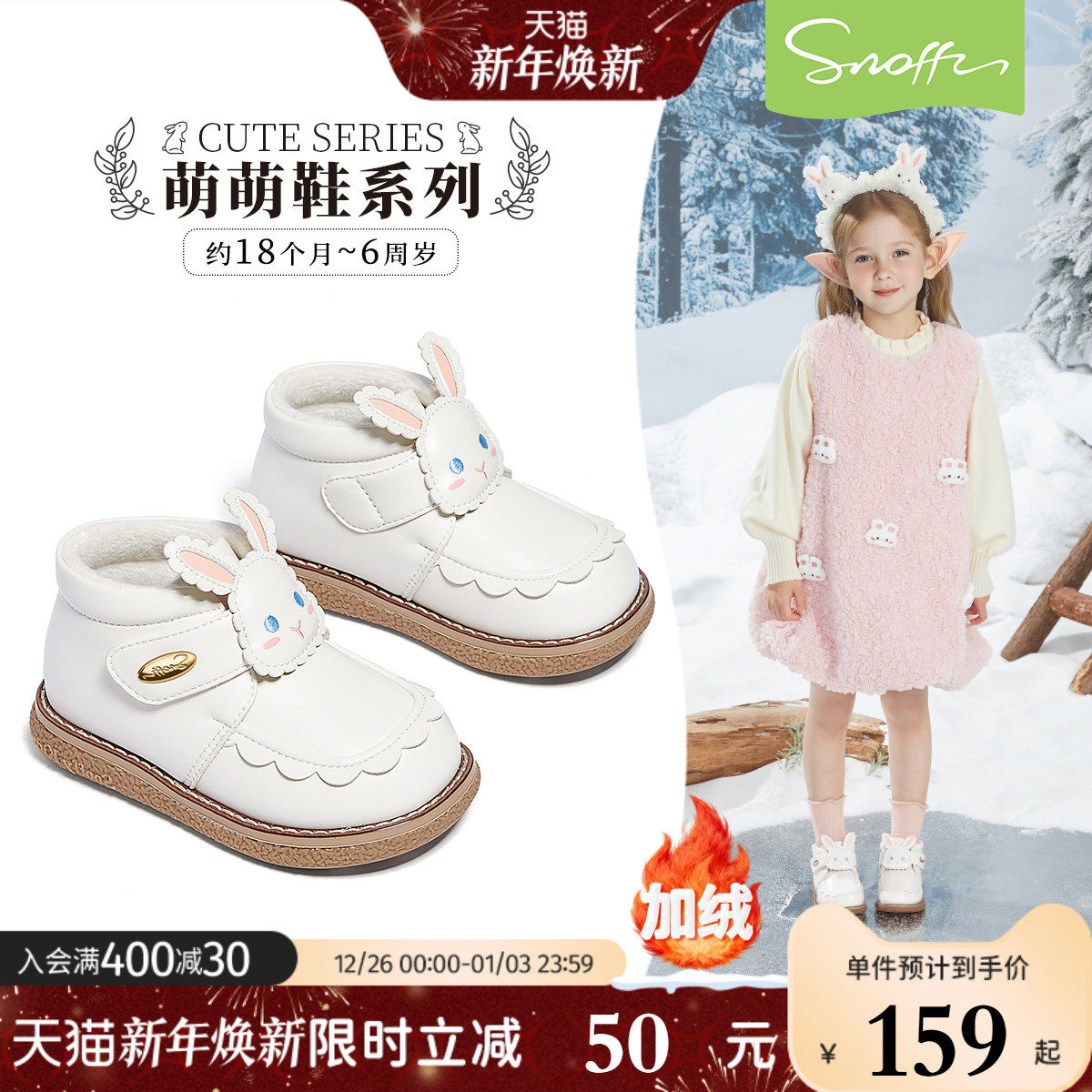 斯纳菲女童短靴加绒皮靴冬季新款儿童雪地保暖防滑小公主宝宝棉鞋