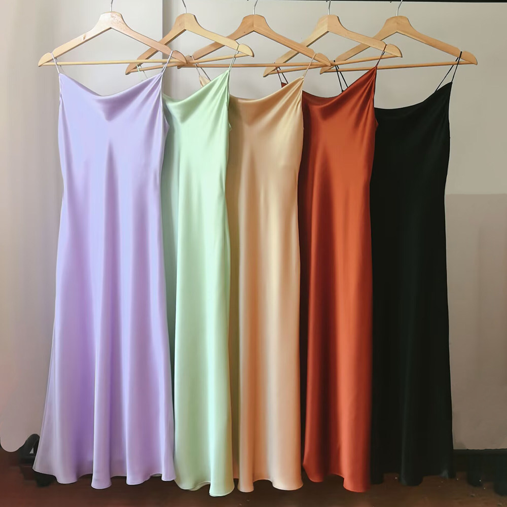 真丝吊带连衣裙女夏季新款醋酸缎面气质桑蚕丝外穿中长款内搭打底